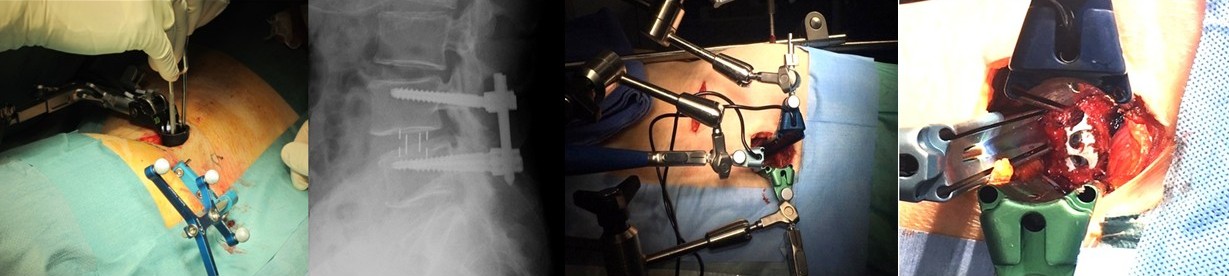 O-arm2を用いた脊椎ナビゲーション手術は、多くの脊椎手術を低侵襲的に安全に行う上で極めて有用です。頚椎から腰椎までの脊柱変形、腰椎すべり症などに対する矯正固定術(図3,4)、