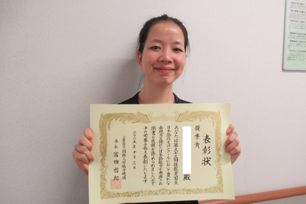 ARCHIVES 2025年度 若草第一病院 わかくさ竜間リハビリテーション病院 介護老人保健施設竜間之郷 2025,12,03, 1188編の中から優秀賞に選ばれました! 当院の看護部ではベトナム出身の技能実習生が6名勤務しています。 毎日、慣れない日本語で一生懸命コミュニケーションを取りながら看護技術の習得に励み、患者さんへ丁寧に介護ケアを提供しています。 今回、2024年から介護士とし… 2025,05,28, 未経験からの教育で日本の介護の未来を見据えた人材育成 2021年10月から働いているベトナム人のヒエンさんです。以前、四国で食品関係の仕事をしていた時に介護の仕事を紹介されて、是非自分もやってみたいと思い、特定技能「介護」の資格取得を行いました。いつも笑顔で挨拶し患者さんと…