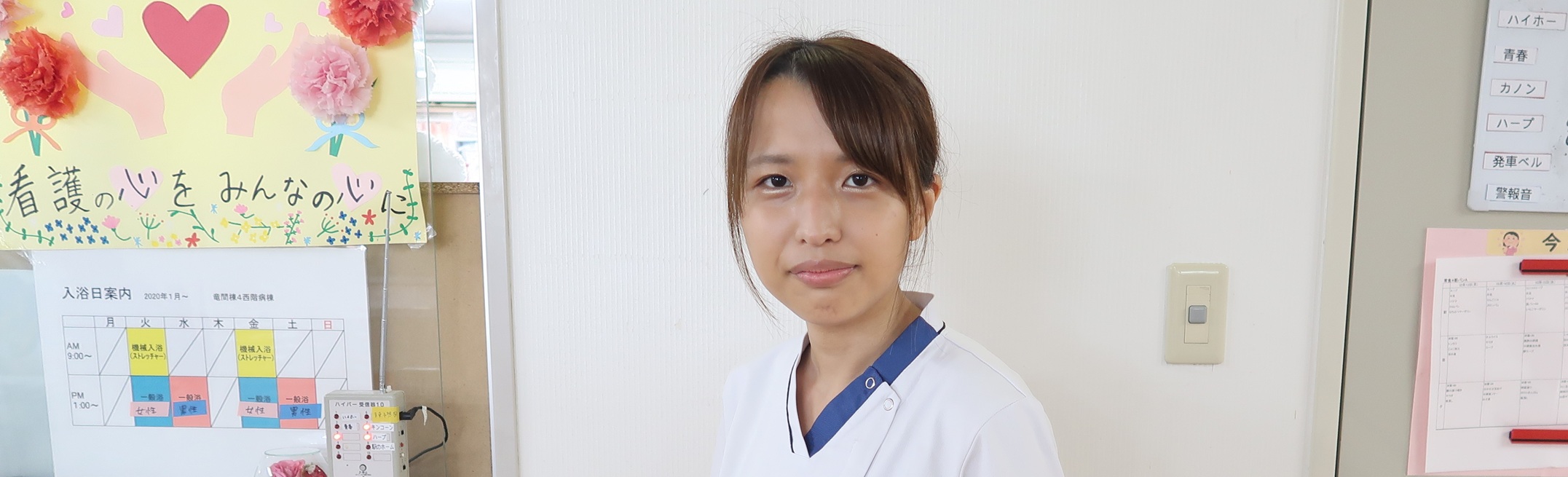 当院では、入院当初はベッド上での生活が主でADLは全介助を要していた患者さんが、他職種の介入により、退院時には独歩で介助を要さない状態で自宅に帰られていく患者さんもいます。その回復していく過程に少しでも貢献できていると思うと、とてもやりがいを感じ働くことができます。是非、一緒に働き、より良い看護を目指していきましょう!