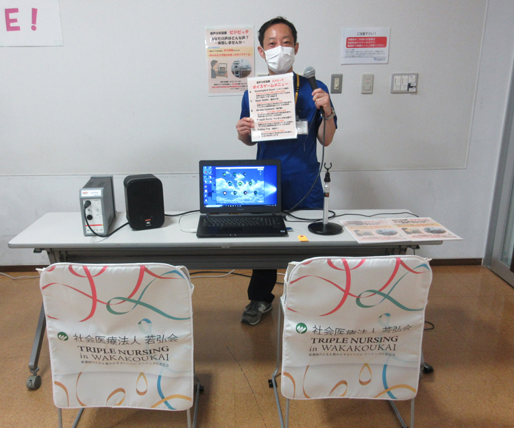 病棟での催しは、それぞれの病棟職員が、患者様にお楽しみいただければと思い、音楽鑑賞や演奏会を行いました。患者様にも笑顔で参加していただくことができました。