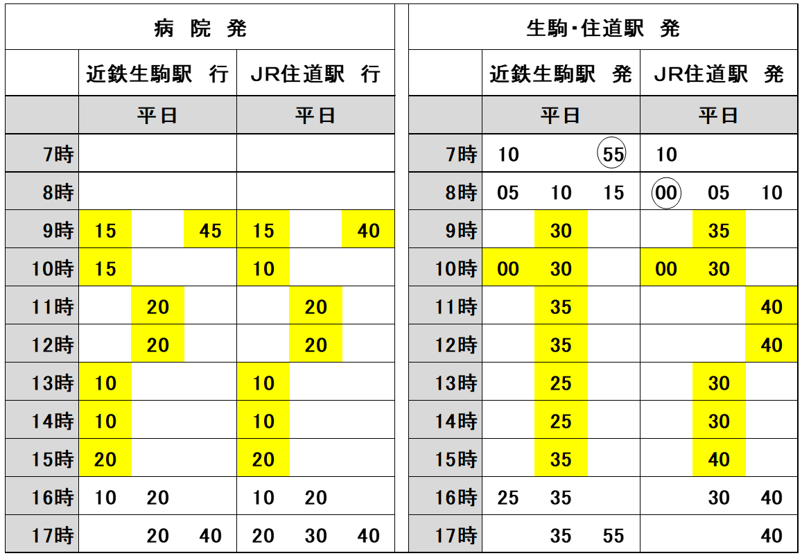 ※16時10分病院発分より青色の中型バスへ戻る予定です。
