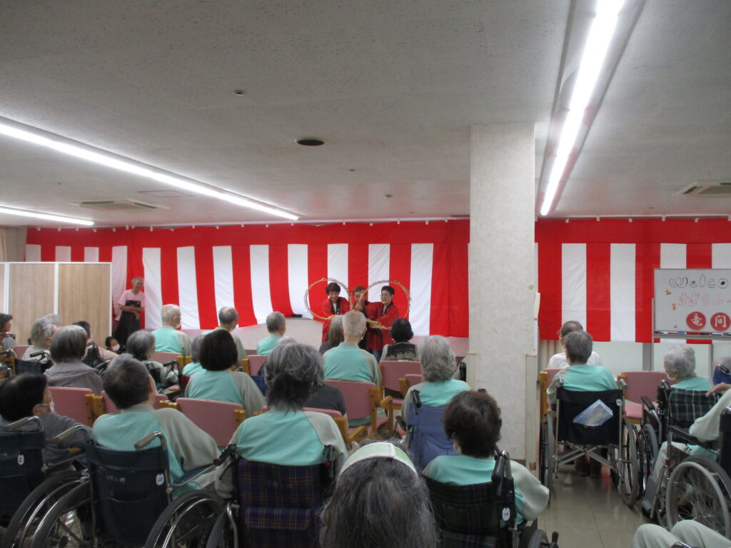 ボランティアグループ「すずらん」さんに来ていただき、歌や、体操、玉すだれなどを披露していただきました。